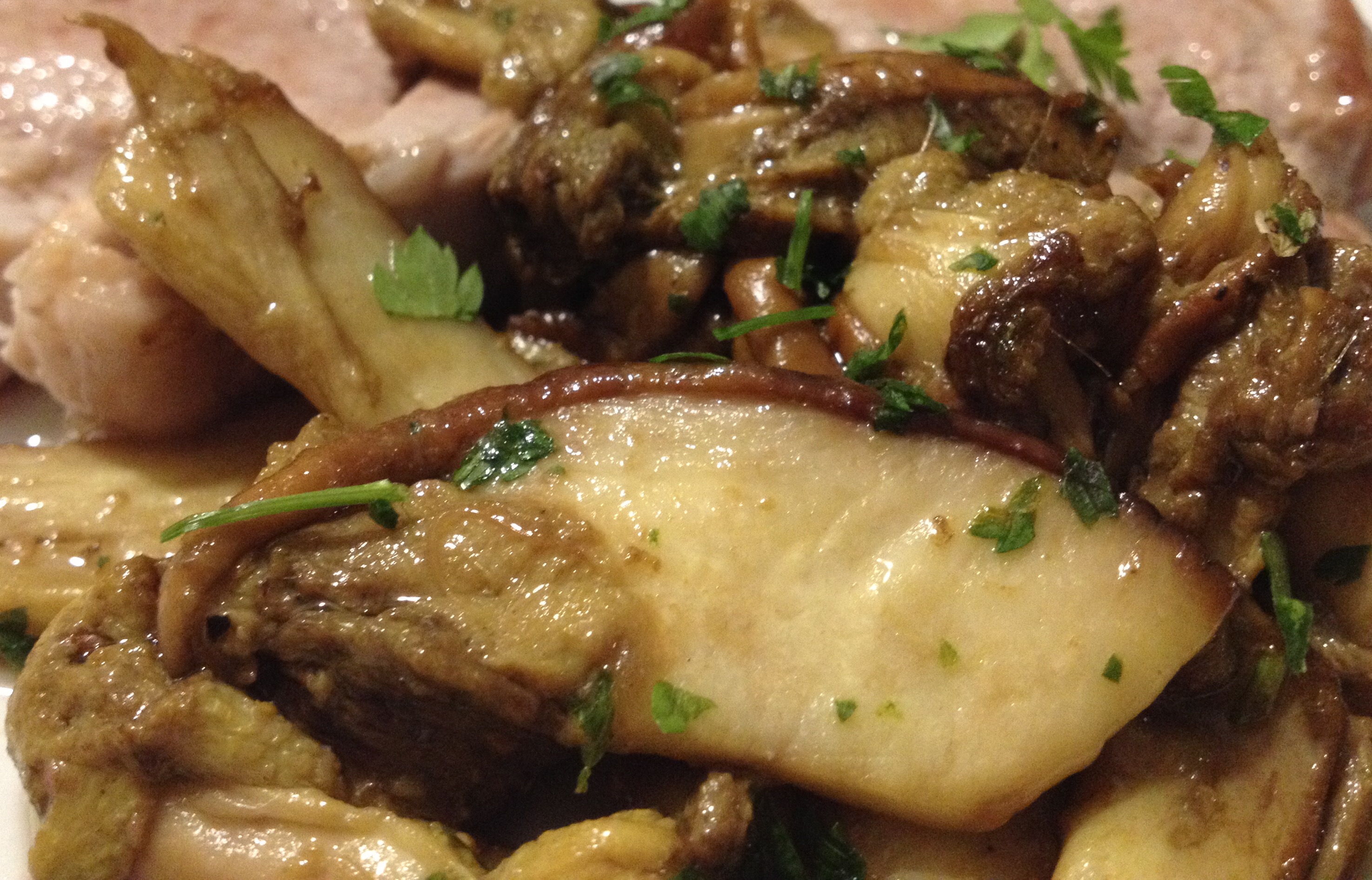 Scaldate in una larga padella l’olio e aggiungete lo spicchio di aglio. Quando questo è appassito, toglietelo e versate i funghi. Salate e pepate e cuocete a fuoco vivace fino a quando si sono asciutti. Ci vogliono 10 minuti circa.
