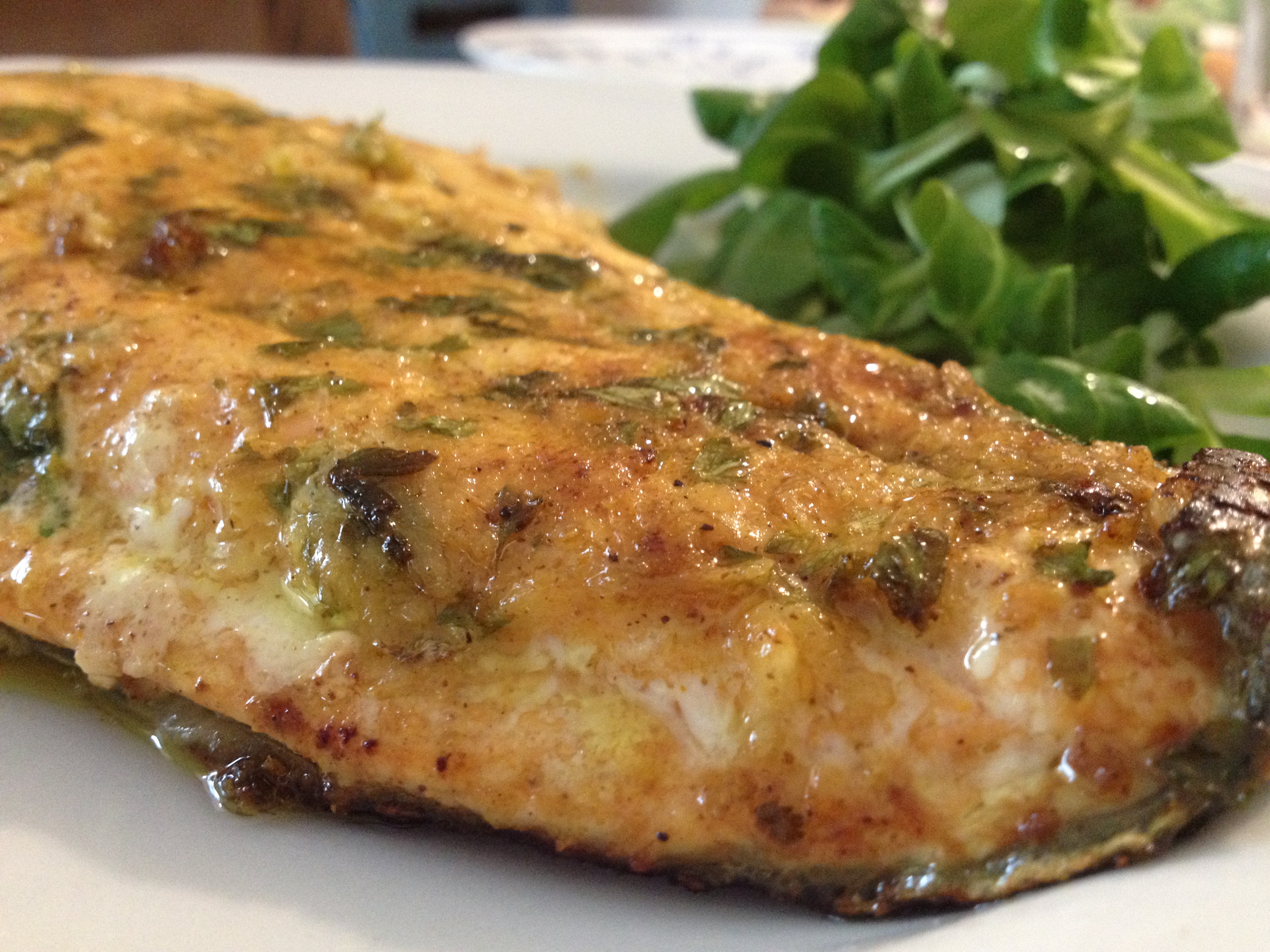 Lay down the fillet on it and season with a mixture made of: 4 tablespoons of oil, the juice of half lemmon, the ginger, the curry, the parsley and the half clove of garlic, hole or squized depending on your taste.