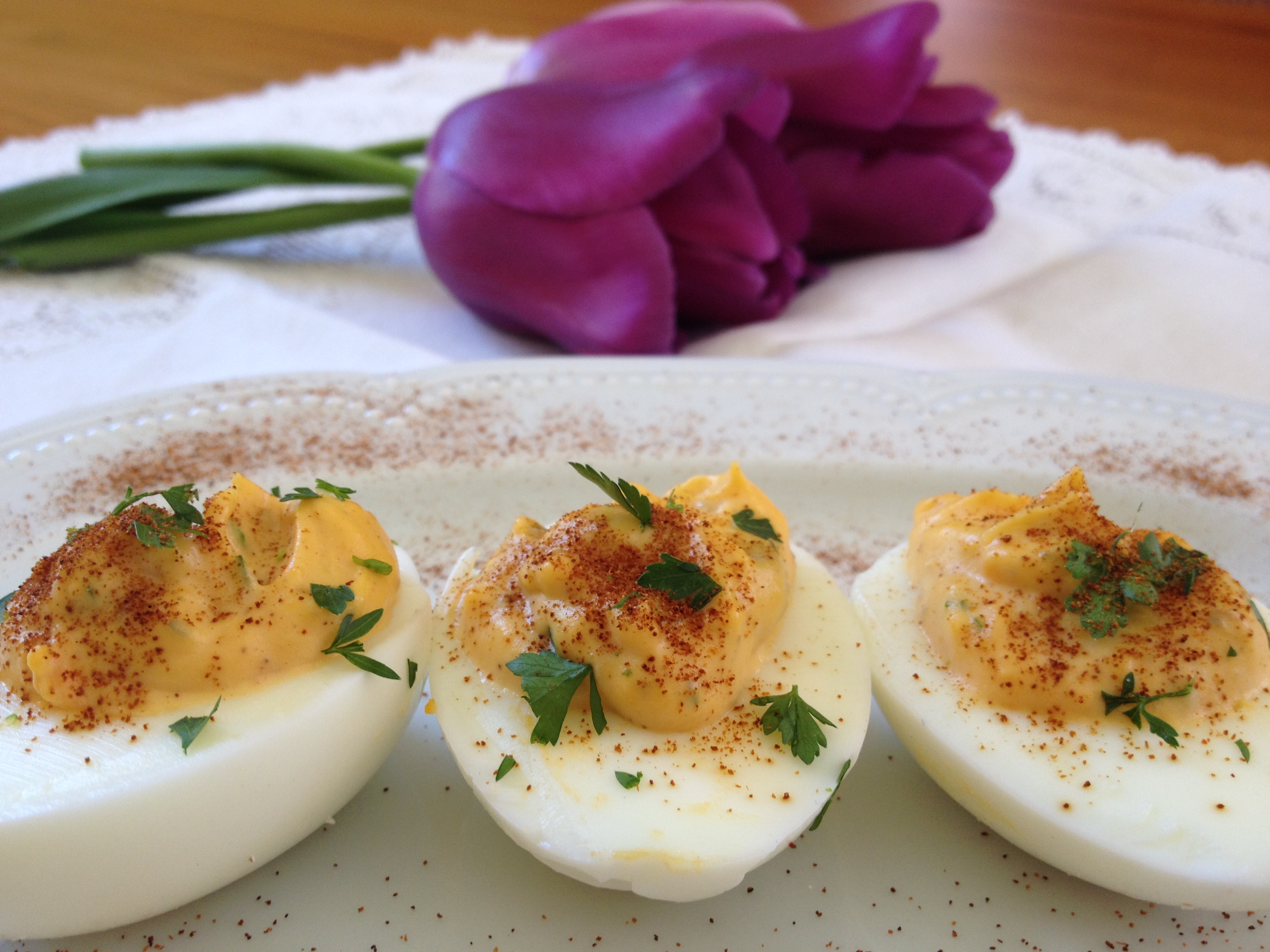 Sgusciate le uova e tagliatele a metà nel senso della lunghezza. Estraete i tuorli e raccoglieteli in una terrina, salateli leggermente, unitevi parte del prezzemolo tritato, i capperi tritati, la maionese e la senape, poi lavorate con la forchetta sino a ottenere un composto lucido e omogeneo. Farcite i mezzi albumi con il composto preparato.