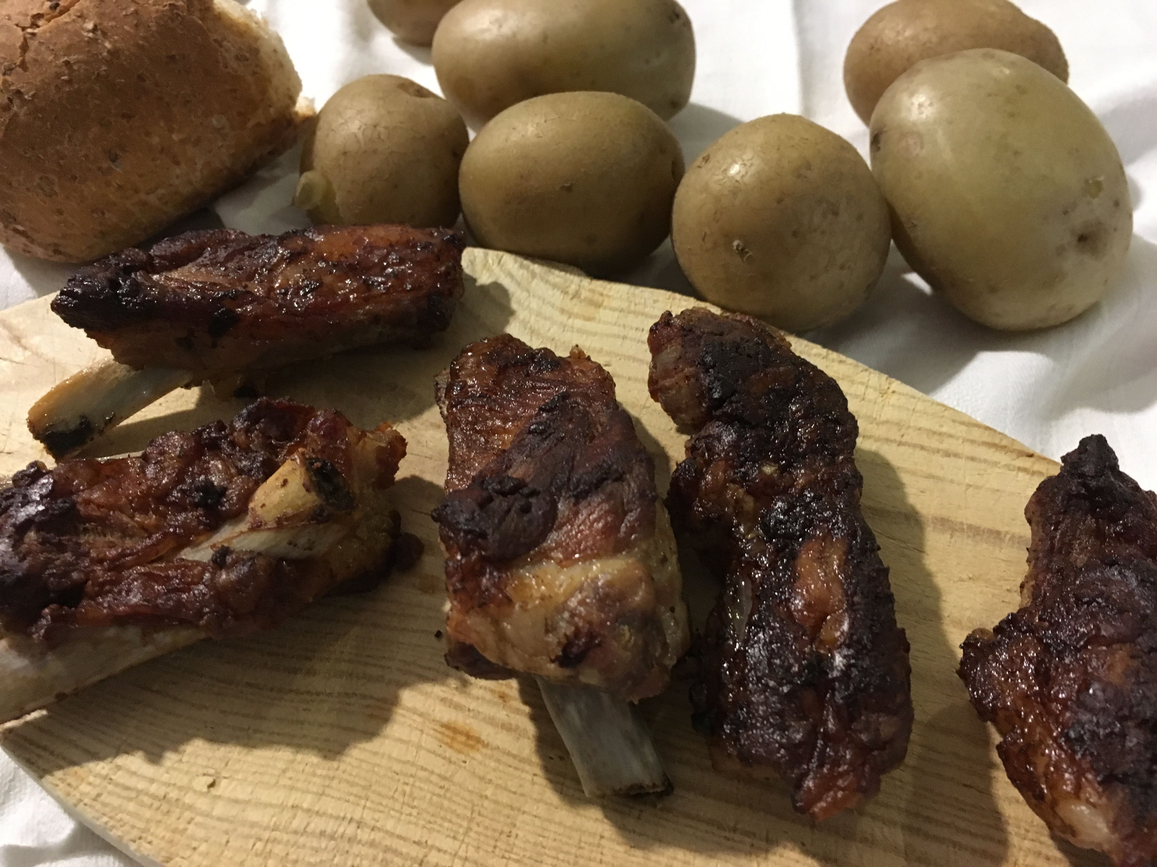Put in a pan the ribs and season with 2-3 tablespoons of oil, salt, pepper and chili. Brown them over high heat and after about 5 minutes pour the wine and let it evaporate.