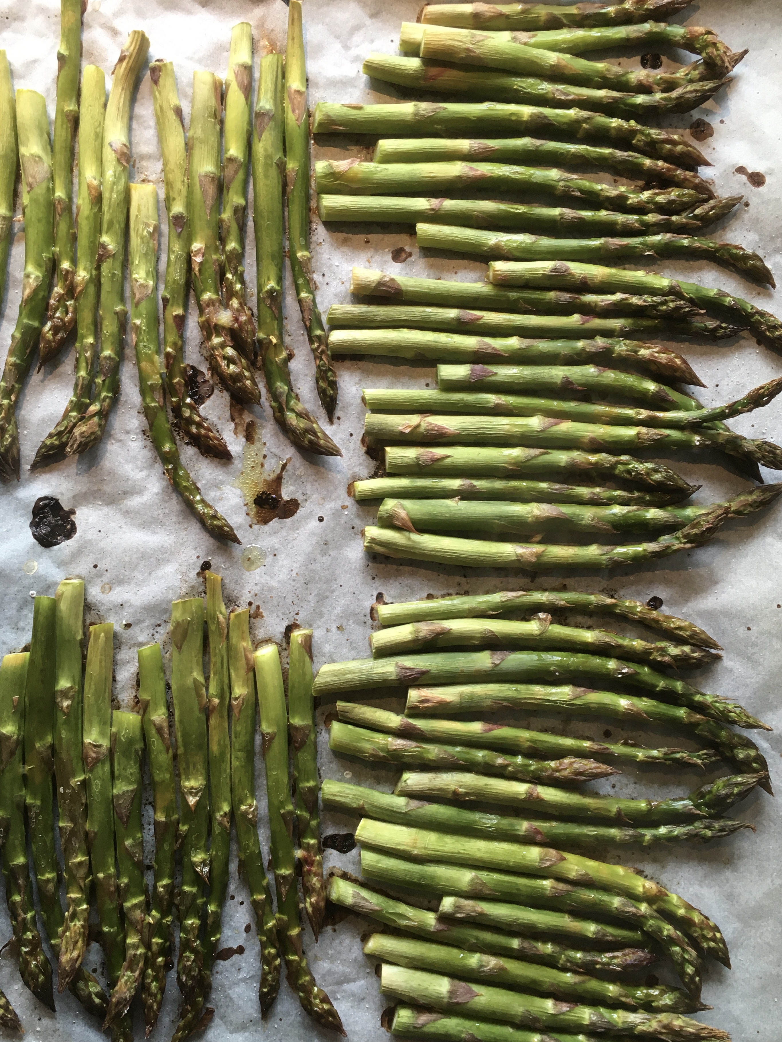 Place the asparagus in a single layer on a baking sheet covered with parchment paper.